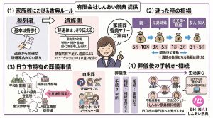 - 👉 1. 見積もりの透明性と「正直な価格設定」 何がプランに含まれ、何が追加料金になるのかを明確に説明してくれる業者を選びましょう。しんあい祭典では、無駄なお金をかけない正直な価格設定から、施主様方々からのご紹介で葬儀を行わせていただいております。